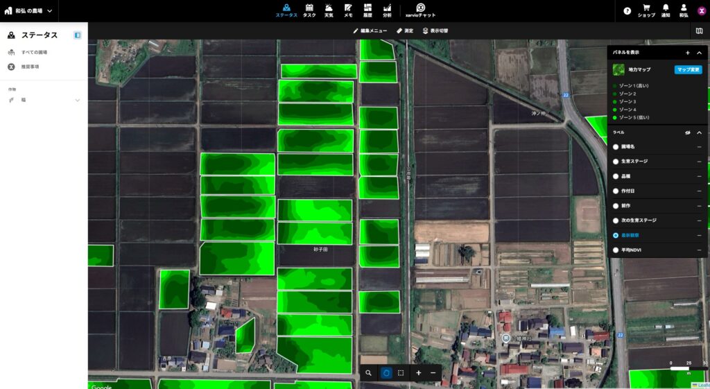ザルビオは、圃場(田畑)に足を運ばなくても状況を詳細に把握できるのが大きな特徴です。